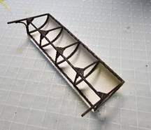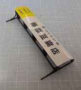 【藤原豆腐店】最大の難関の登場です。お店のテント素材の屋根です。【藤原豆腐店】って書いてあるヤツ。これは曲面構成じゃぁ無いですか。しかしここは売られた喧嘩・・・ですので、試行錯誤しながらプラ棒で枠を組み、曲面部分は火で炙ったプラ棒を設計図の曲線に合わせて曲げて行きます